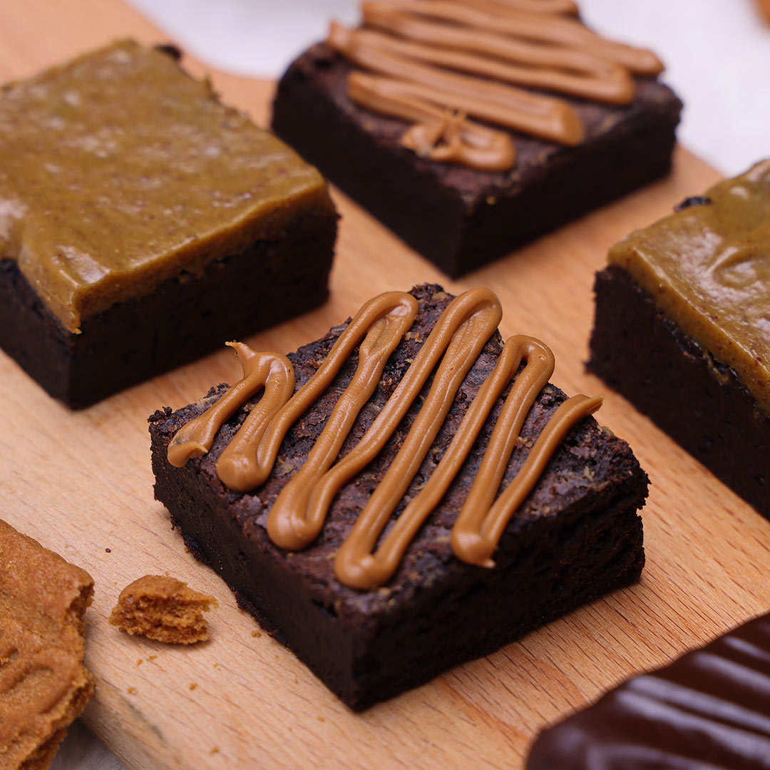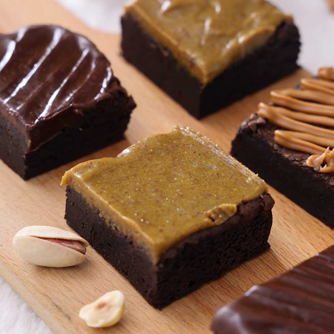 Every dark chocolate brownie is baked with premium dark chocolate and finished with one of three decadent gourmet toppings: